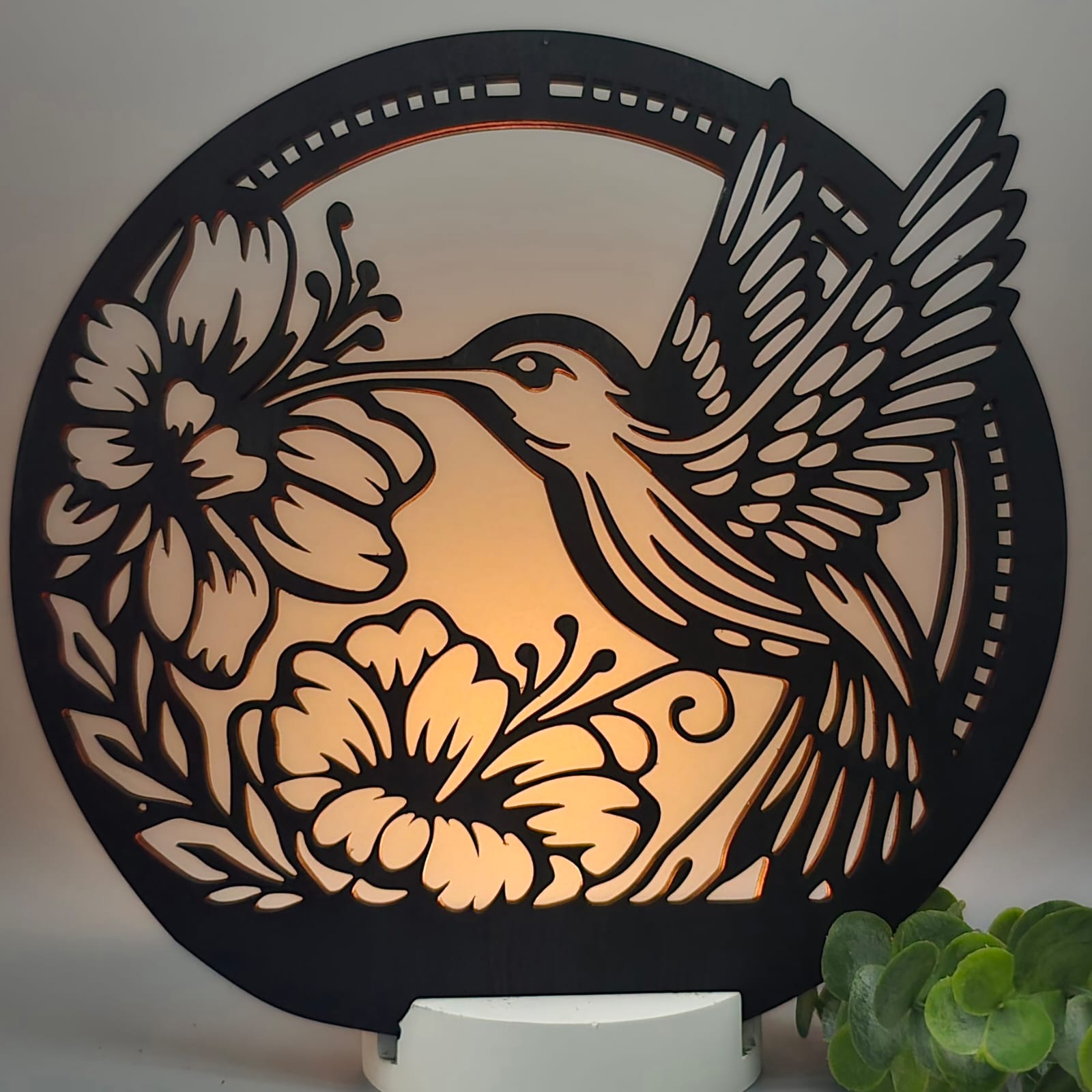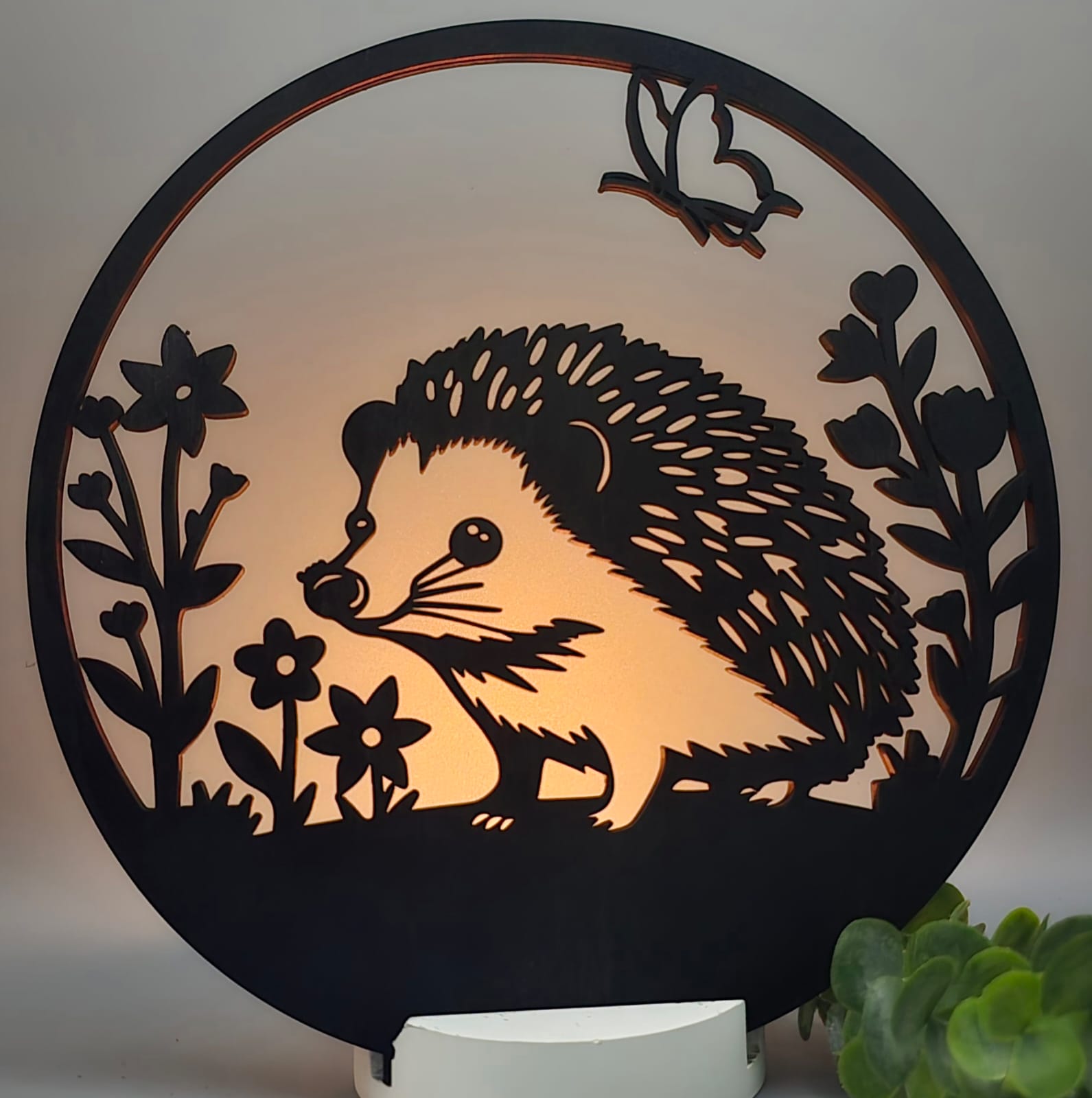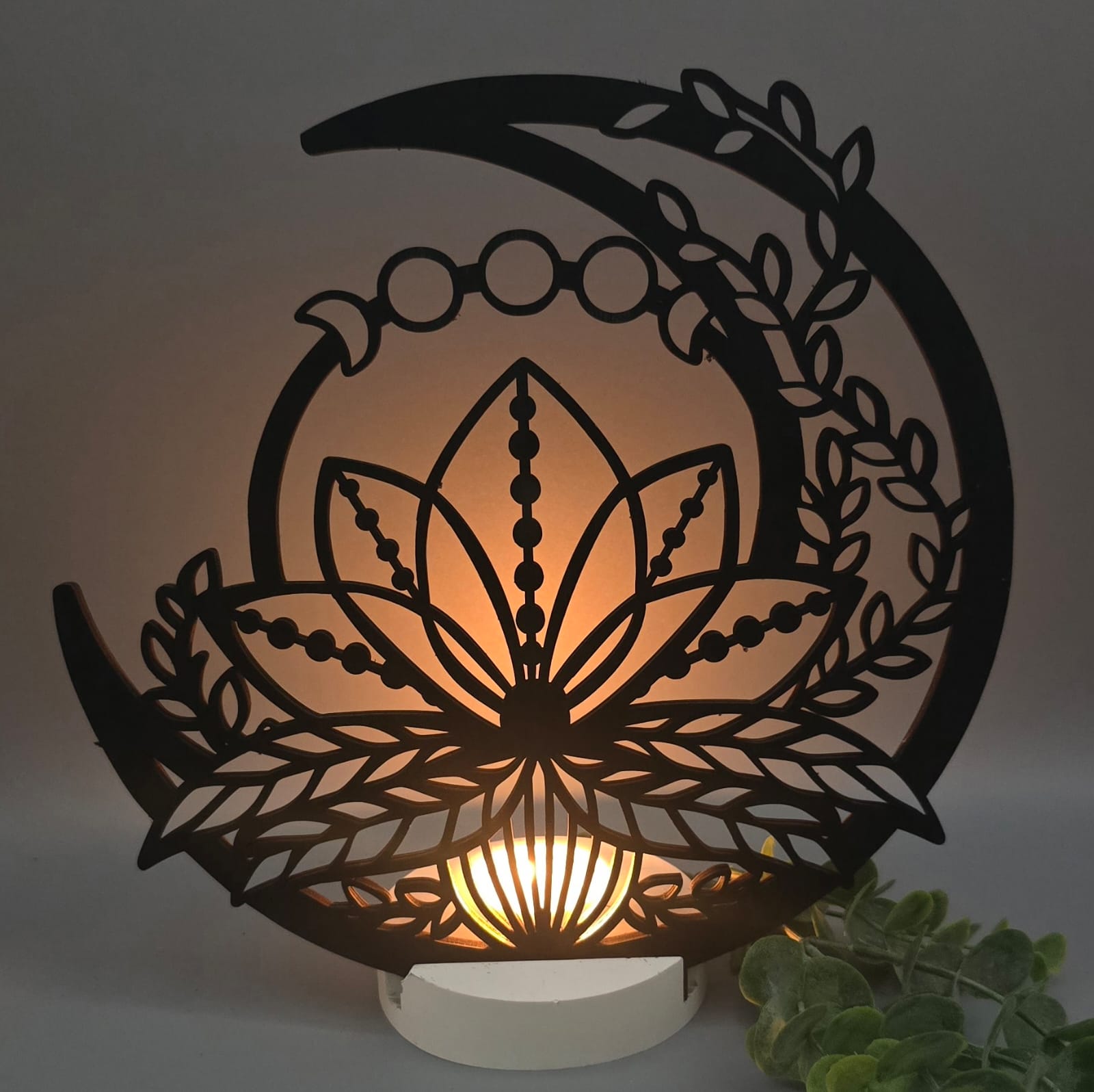 Die Dekoscheibe wird in einen passenden Ständer eingesetzt und mit einem integrierten Kerzenhalter kombiniert. So entsteht ein harmonisches Gesamtbild, das besonders bei Kerzenschein eine gemütliche und warme Atmosphäre schafft.