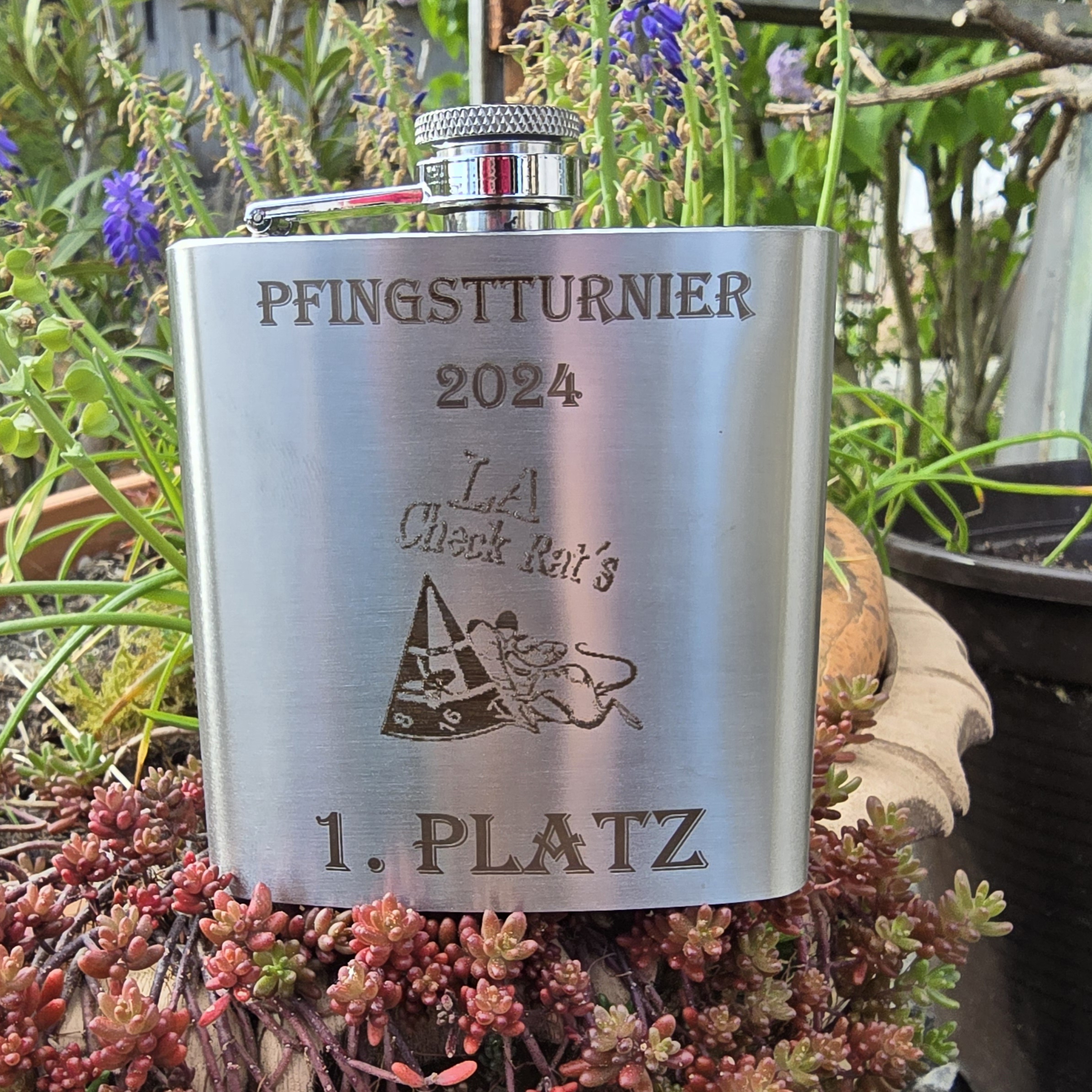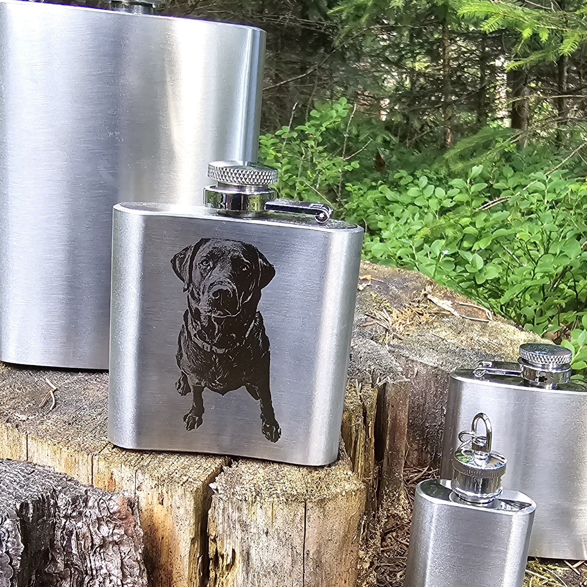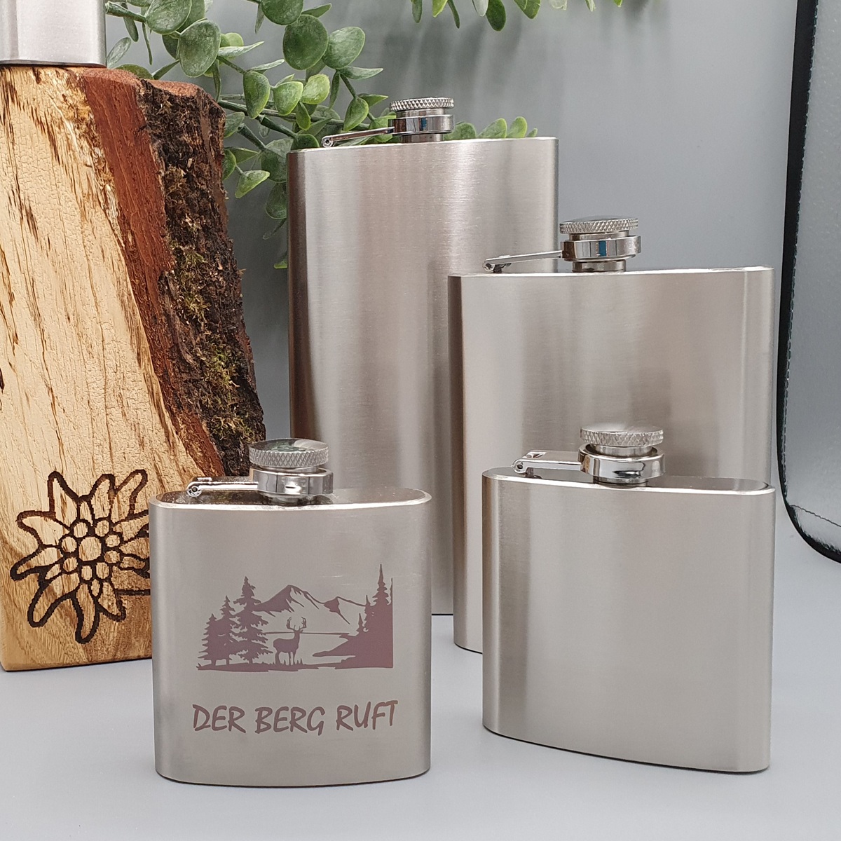 Einer unserer Bestseller, der klassische, Flachmann in perfekter Größe mit einem Fassungsvermögen von 6 Unzen. Hergestellt aus robustem Edelstahl und mit einem befestigtem, unverlierbarem Deckel.