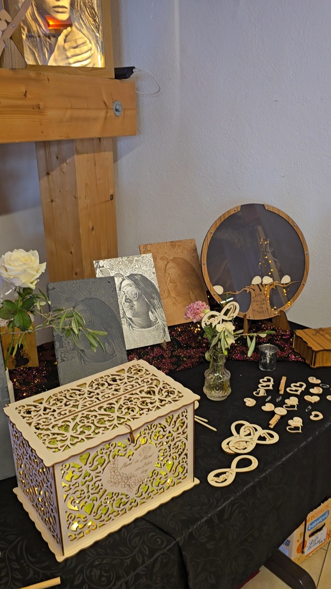 Diese edle Kartenbox aus 4 mm Sperrholz überzeugt mit einem filigranen, detailreich ausgeschnittenen Design und einer hochwertigen Gravur. Zusätzlich kann sie mit einer individuellen Wunschgravur personalisiert werden – perfekt für Hochzeiten, Geburtstage, Taufen oder andere besondere Anlässe.