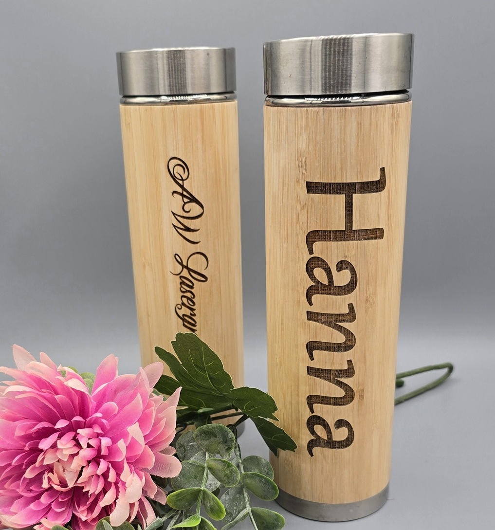Materialmix: Bambus, Plastik, Rostfreier Edelstahl 304 Länge 8 cm Breite 8 cm Höhe 22 cm Gewicht 350 g Volumen 360 ml