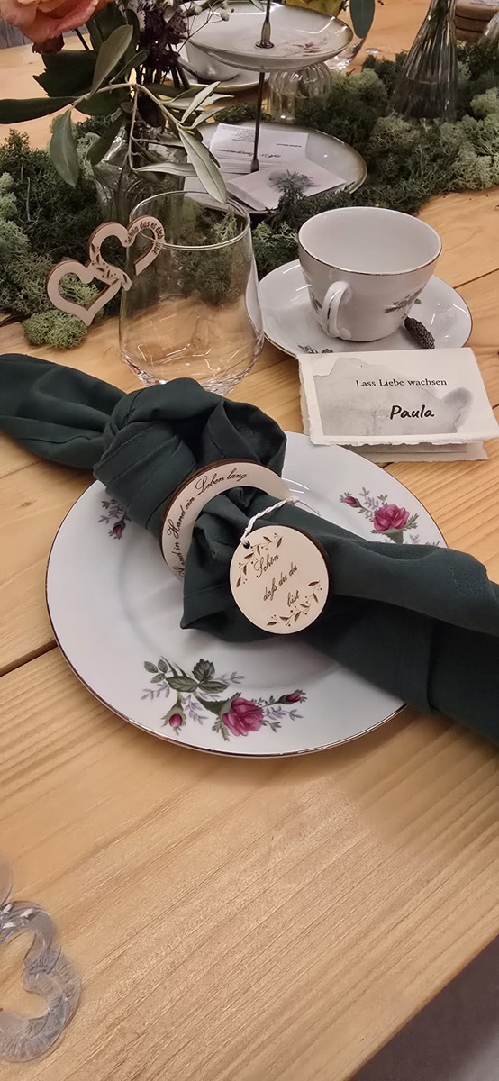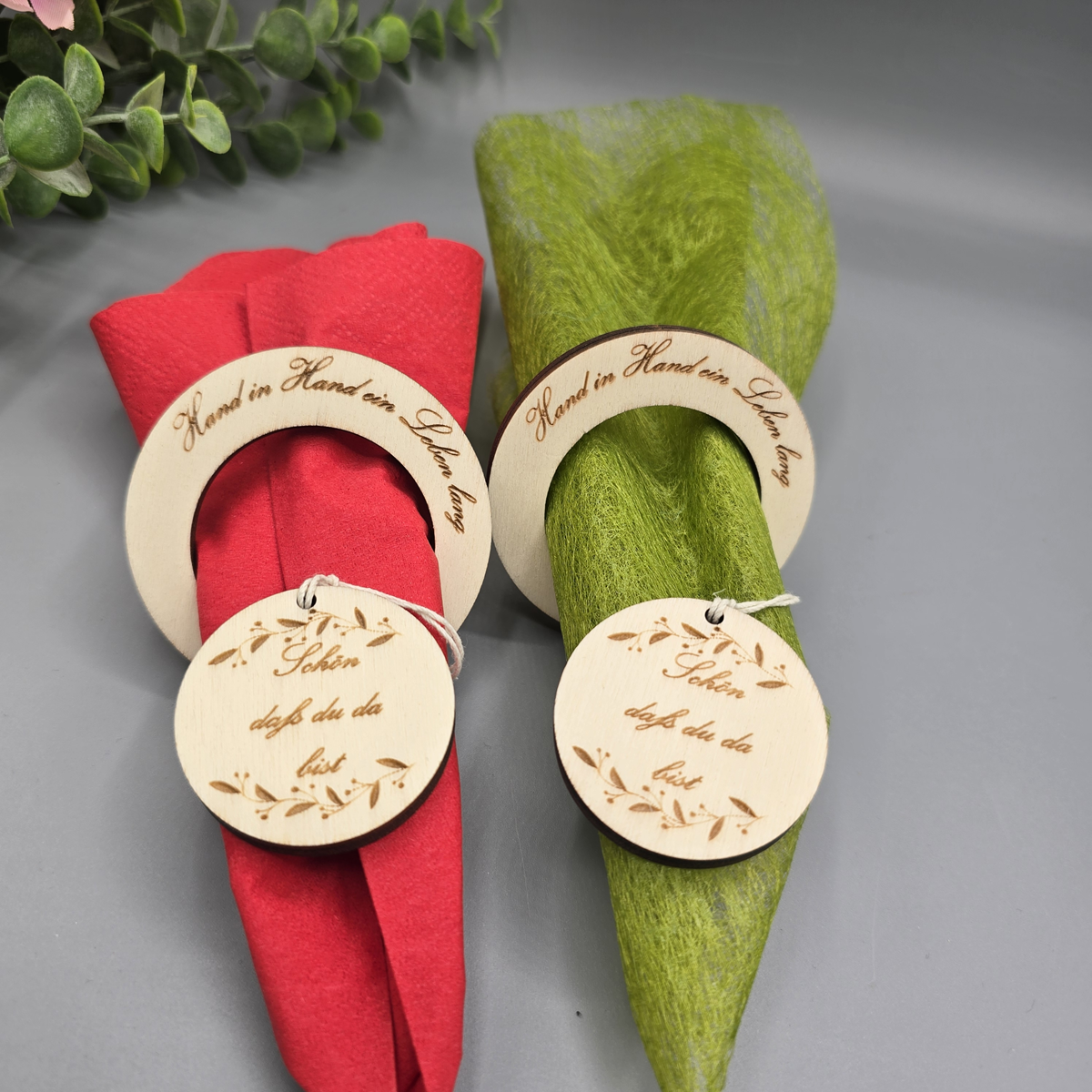 Verleihen Sie Ihrer Tischdekoration eine besondere Note mit diesem eleganten Serviettenring aus 6 mm starkem Sperrholz. Durch die hochwertige Gravur und die Möglichkeit zur Personalisierung wird jeder Serviettenhalter zu einem einzigartigen Hingucker – perfekt für festliche Anlässe wie Hochzeiten, Geburtstage oder Weihnachten.