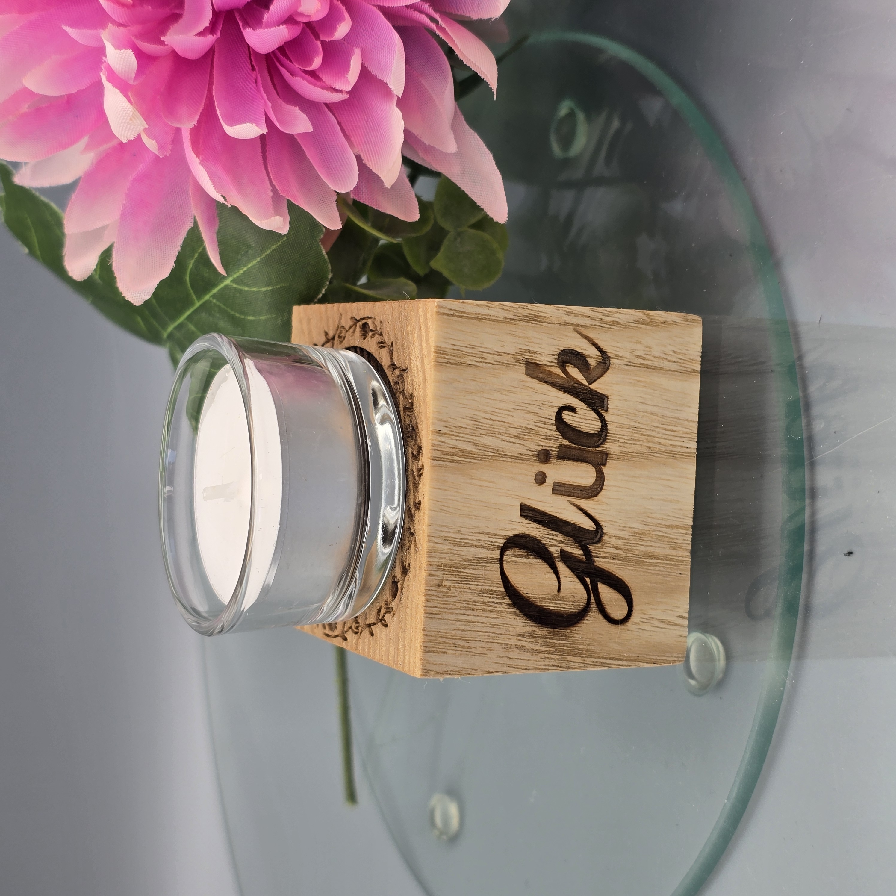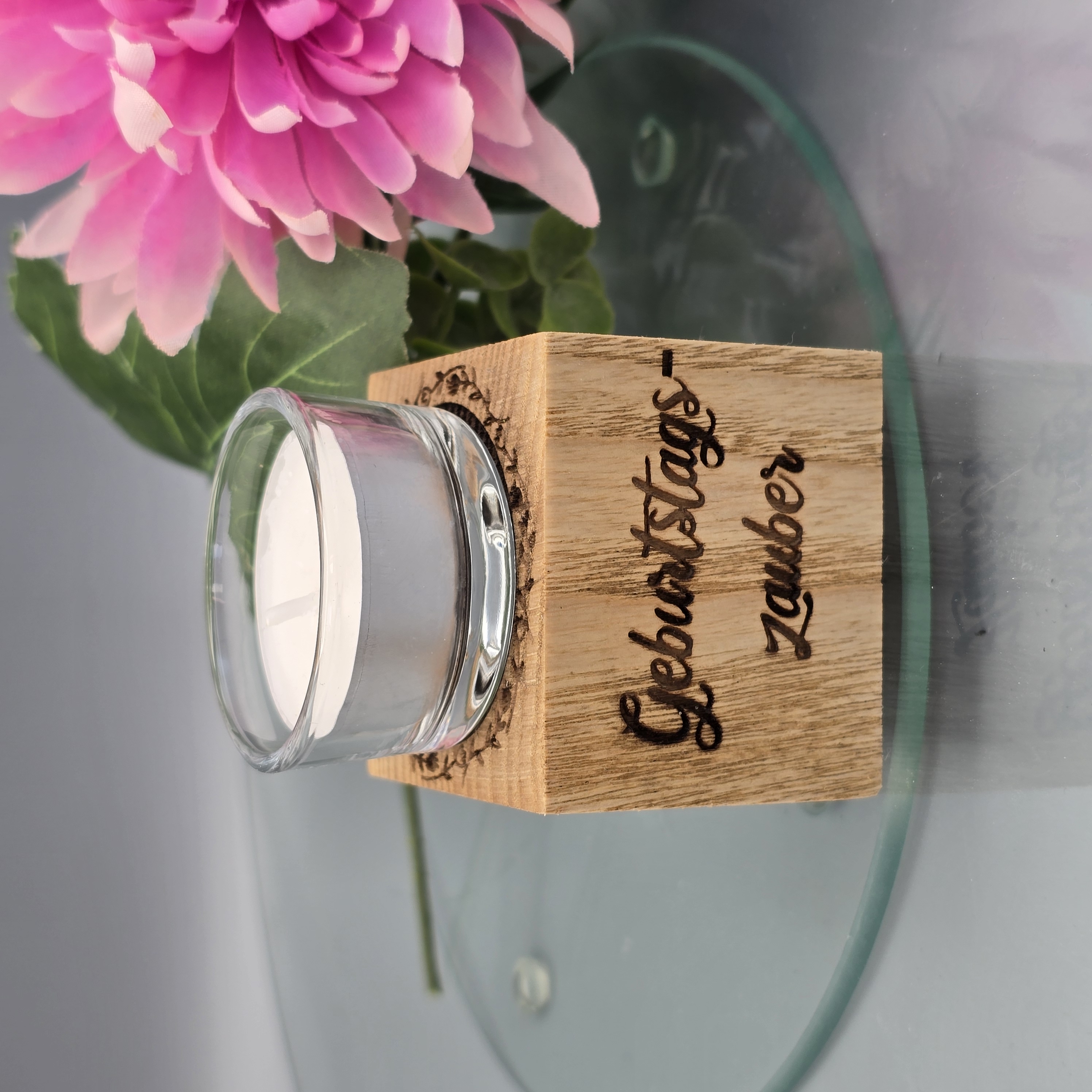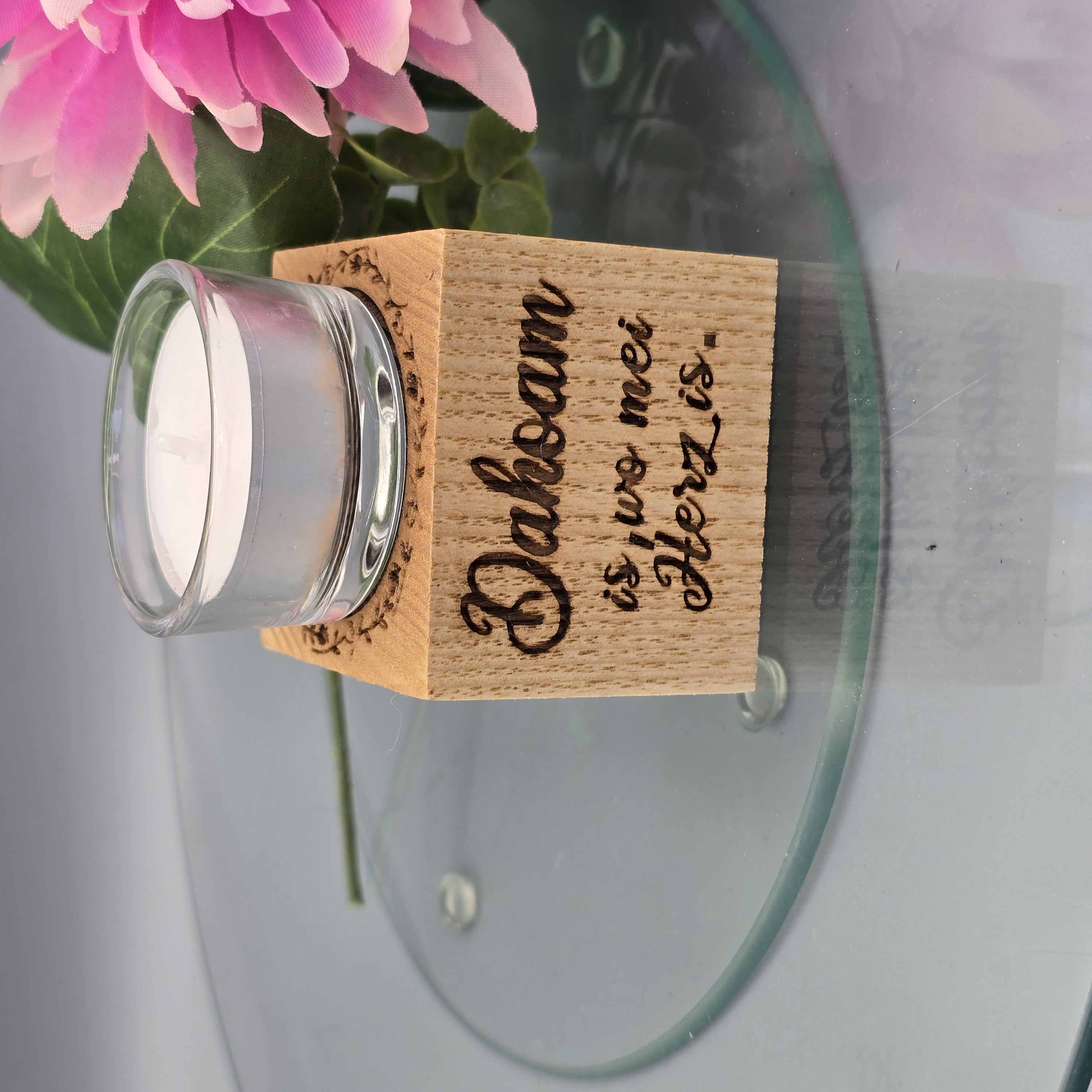 Teelichthalter aus massiver Eiche mit Lasergravur