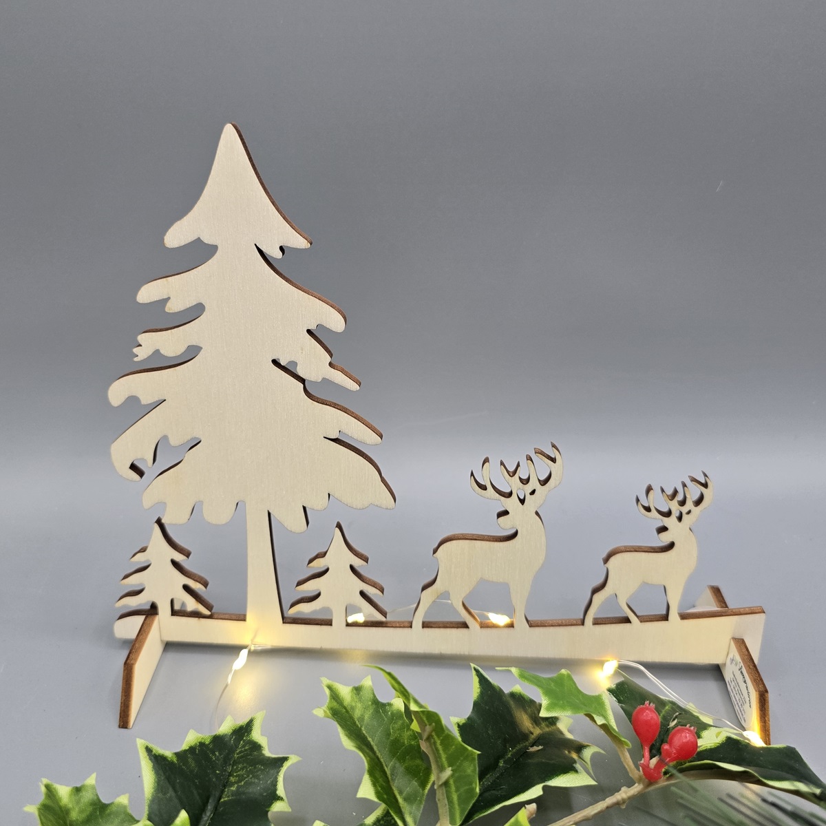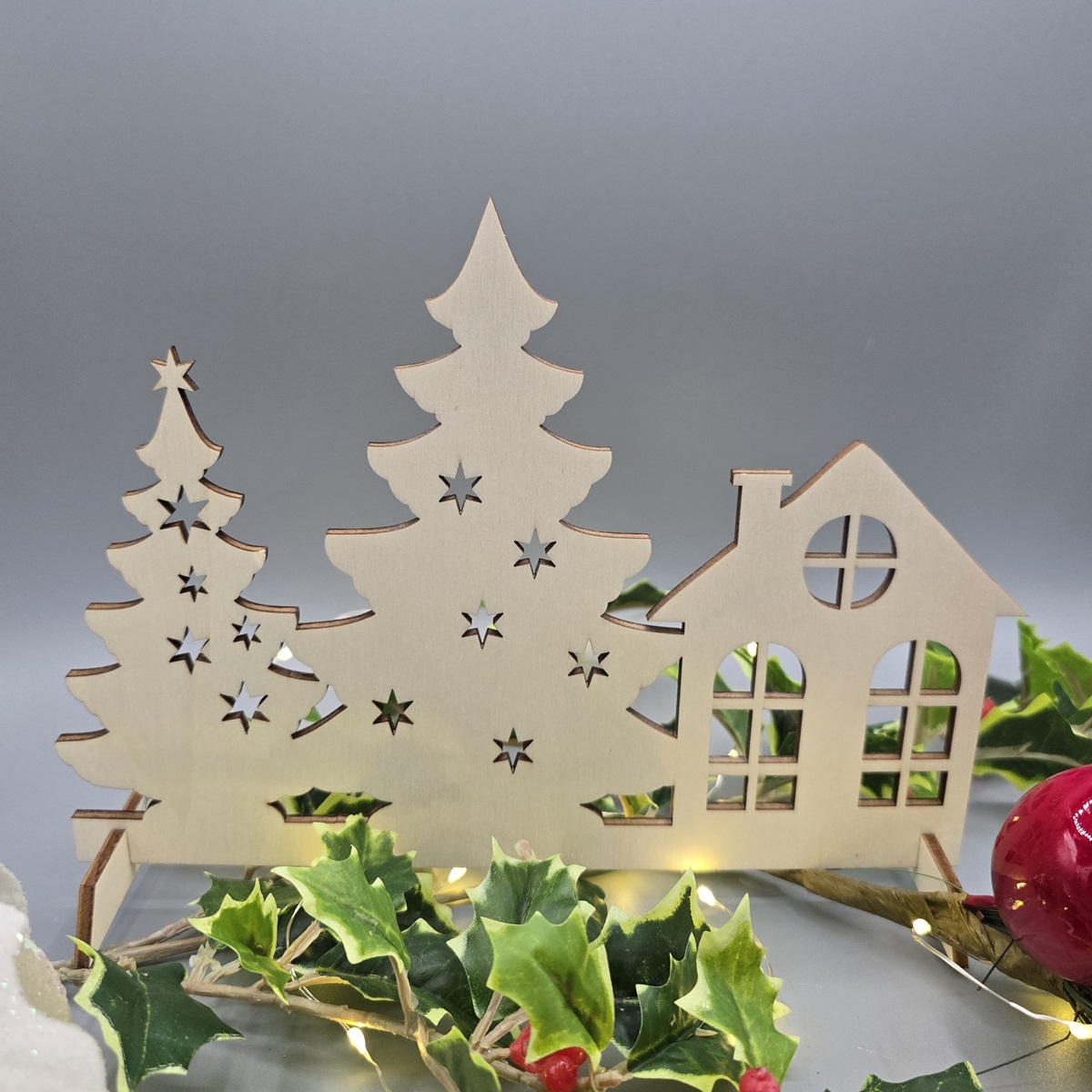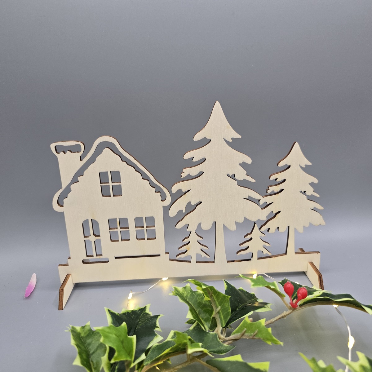 Weihnachtsdorf aus Sperrholz – Festliche Stadt- und Waldkulisse