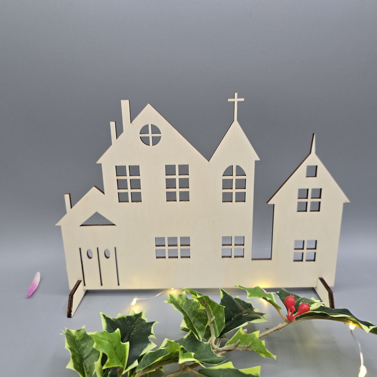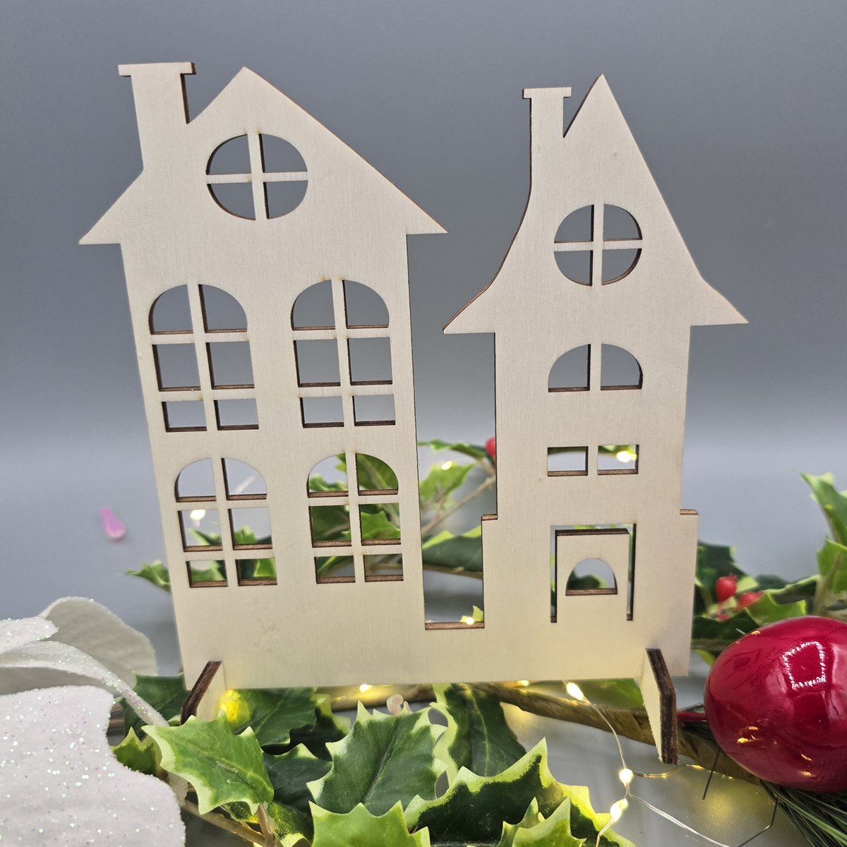 Schaffen Sie sich eine winterliche Wunderwelt und lassen Sie die Feiertage mit unserem detailreichen Weihnachtsdorf aus Sperrholz aufleben!